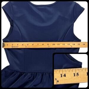 Trendyland Cap Sleeve Scoop Neck Pull On Midi Dress Size Large Navy Blue
