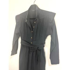 Trendyol Women's Black Long Sleeves Front Buttons Belted Jumpsuit sz. 36/XS