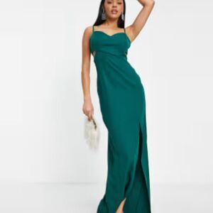 Trendyol Women's Cut Out Maxi Dress with Leg Split in Green Size EU 40,US 8 NWT