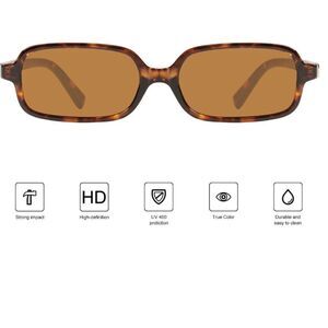 The sunglasses feature a small rectangular frame inspired by 90's trendy,offering a unique artistic look. Sturdy frames equipped with UV400 lenses.