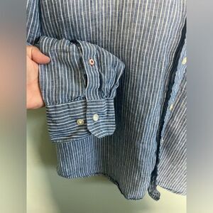 Trenery 100% Linen Blue Striped Mens Button Down