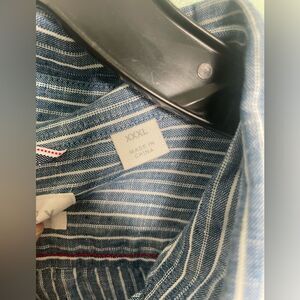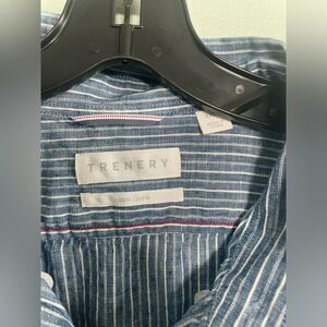 Trenery 100% Linen Blue Striped Mens Button Down Size 3XL