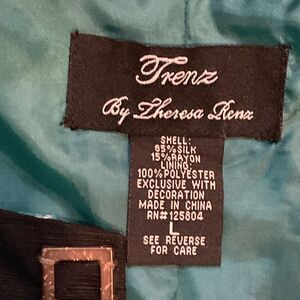 Trenz by Theresa Renz Silk Cardigan Artsy Floral Jacket Wood Buttons Size Large