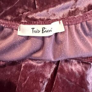 Tres Bien Velour On/Off Shoulder Blouse Wine Color Ruffle Elastic Top Size Large. Excellent condition. See photos for details and measurements. View my closet to add other items and bundle to save with one shipping fee!