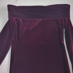 Tres Bien Velvet Off Shoulder Women's Dress Mini Bodycon Large Burgundy