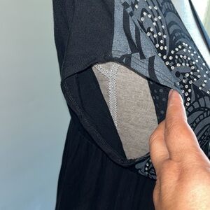 Tres Bien v- neck dress black and grey with rose details and beading. Size Med.