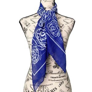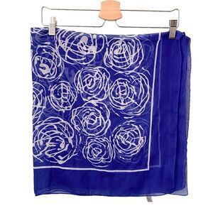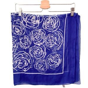 Tres- Elle Made in Italy Rose Print Blue and White Scarf in One Size