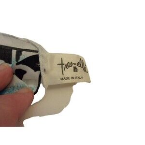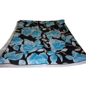 Tres Elli Scarf 30" X 20" Black Blue Floral Design Italy Vintage