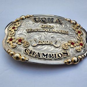 Tres Rios Silver Trophy Belt Buckle UQHA Open Yearling Mares Champion 2008 Stearling Overlay