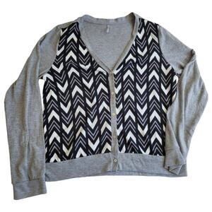 Tresics Chevron Knit Cardigan Large Gray Black White V-Neck Button Front Stretch
