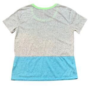 80% polyester, 20% linen, arm pit to arm pit measures 19 inches, length 23 inches.