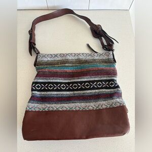 Treska Boho Large Tote Satchel Shoulder Bag Purse Earthtone Embroidered Leather