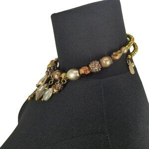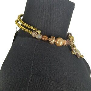 NEW Treska Gold Copper Mixed Metallic Beaded Choker Necklace Earring Bracelet