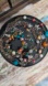 This Treska set is convertible each chain strand has double lobster claw clasp allowing it to be worn as singles, doubles, or all three. There is a mix of stone, acrylic and metal beads on tri- color chains (antiqued silver, brass, and copper tone). Pierced dangle earrings and wrap style bracelet, perfect spring and summer colors, aqua, red , yellow, orange and green. There are several charms throughout, shoe, dog elephant, pad lock, key, star. I did note a bit of color loss to a couple of the small charms, 1 the shoe on the bracelet, 2 the shoe and elephant on the necklace, please see last photos. This is a pre-loved set in good condition, please see all photos for measurements and details.