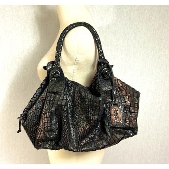 Great bag in great condition. Zippered top. Interior is lined in brown fabric. Has several compartments and a zipper pocket. Treska tag has a few scratches.
