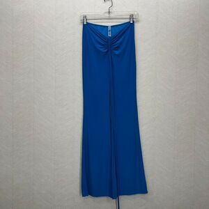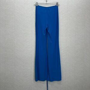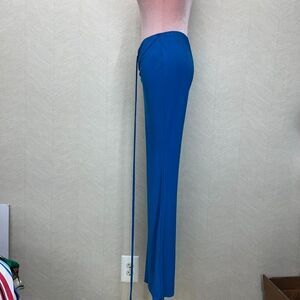 Tresser Stretch Blue Ruched Tie-Front Wide Leg Pants Womens Size Medium