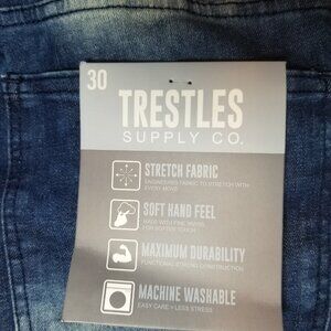 Up for sale is a Trestles Supply Co. Distressed Ripped Men Size 30 Blue Denim Jean Shorts - New With Tags