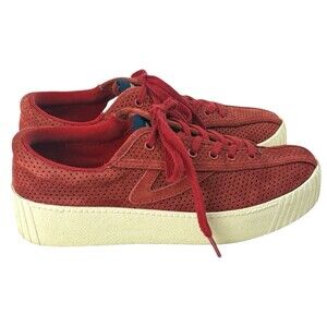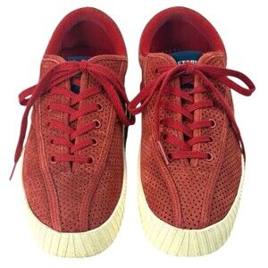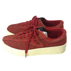 Tretorn Nylite 3 Bold Perforated Nubuck Leather Chunky Sneakers Red Orange 6
