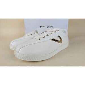 Tretorn Nylite Plus Sneakers Womens 9 M White Light Gold Leather Low Shoes NWB