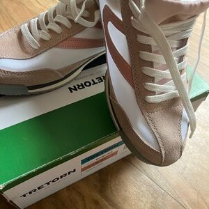 Experience the perfect blend of style and comfort with Tretorn's pink and white sneakers. These modern casual shoes feature a sleek design with a comfortable sole, making them ideal for everyday wear. The open-back mule style adds a unique touch to your footwear collection.