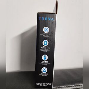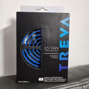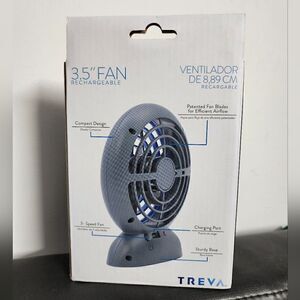 Treva brand 3.5 inch fan rechargeable batteries, USB cable included, 3 speed, sturdy base