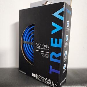 Treva 3-1/2" Blue 3-Speed Portable Rechargeable Fan with Sturdy Base New In Box