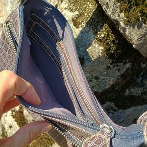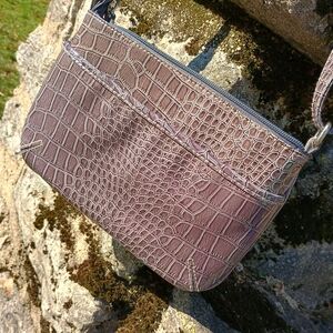 This is a very nice, Treviso, mock croc smoky purple crossbody bag with adjustable strap and pockets inside & out. This little bag appears to have never been used and is now looking for a new owner. I love this particular color around Fall, it reminds me of the purple leaves I see on the ground. If you're looking for a little Fall bag, this is a nice find. Grab it up today before it's gone!