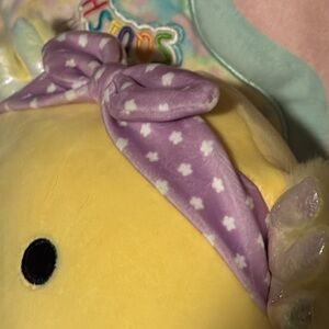 Treyton the Axolotl squishmallow with purple star bandana and sunflower on belly, 8 inch brand new with hang tag included