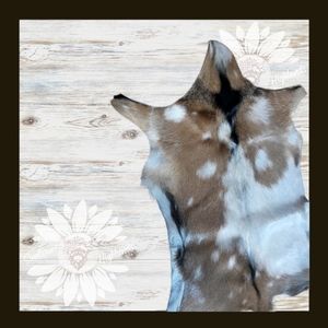 Tri Colored Dominant Brown and white, Hair on Hide Goat Rug.