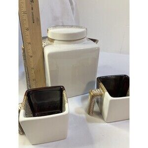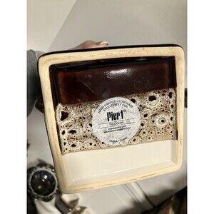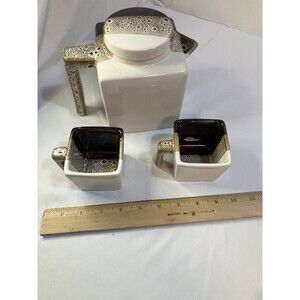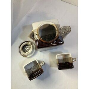 Tri Color Pier 1 Imports Stoneware Teapot/2 Cups Brown Tea Coffee Set