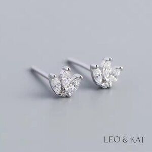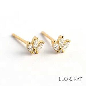 Tri Marquise Zircon Stud Earrings in Gold & Silver. 925 Sterling Silver #1038