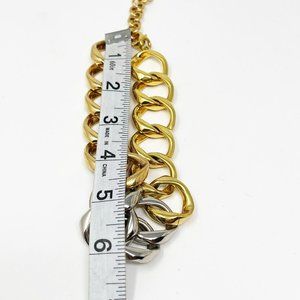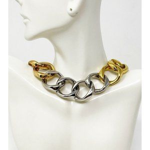 Tri Tone White/Yellow/Rose Gold Tone Chunky Chain Link HipHop Collar Necklace. Good preowned condition. Please see pics for details and measurements. Thanks for looking.
