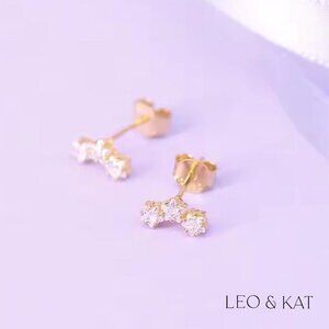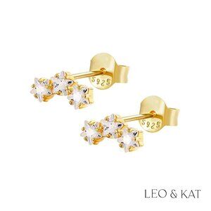 Tri Zircon Stars Gold Stud Earrings. 925 Sterling Silver. #1034
