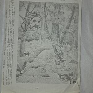 This is a Tri-Chem Ready to Paint artwork, 8189 Jesus Watching Over. It is 19" x 26" and includes the Instructions. This piece was started as the outline of the boy has been colored yellow but a vast majority remains unpainted. It has some creases from being folded and some discoloration at the crease but can likely be covered by painting. This is the painting and instructions only and no painting or other accessories are included.