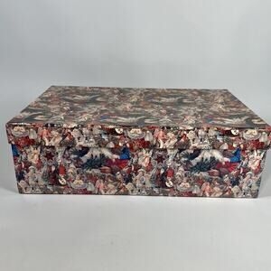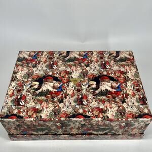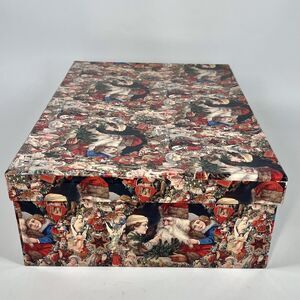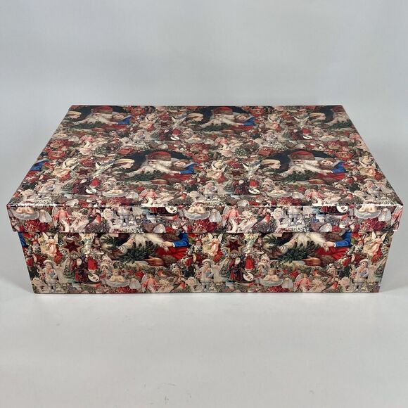 Tri-Coastal Design Large Storage Box - Old World Victorian Christmas Santa Angel. 17” long, 12” wide, 5.25” tall. Excellent preowned condition. Continuous pattern inside and out.