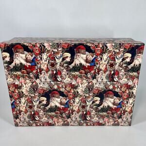 Tri-Coastal Design Large Storage Box - Old World Victorian Christmas Santa Angel. 17” long, 12” wide, 5.25” tall. Excellent preowned condition. Continuous pattern inside and out.