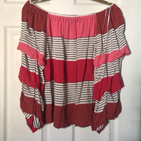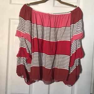 Tri-color stripped puffed sleeve blouse from velvet & heart