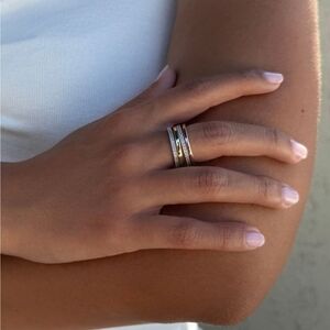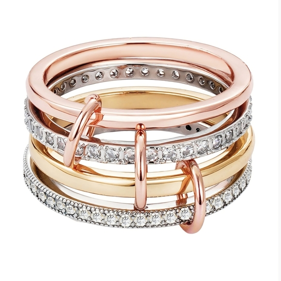 This exquisite ring set features a harmonious blend of rose gold, gold, and silver tones. Perfect for adding a touch of sophistication to any ensemble.