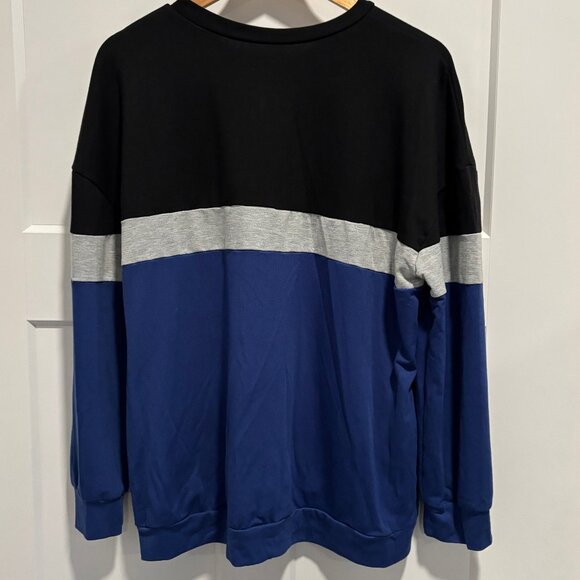 Super warm tri-color sweatshirt with side pockets. Perfect for those chilly winter days! From non-smoking home.