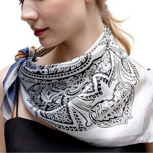 100% polyester silk scarf that is soft, smooth, and of high breathable. Versatile scarf that can be used as a head wrap, shawl, neck or waist tie.