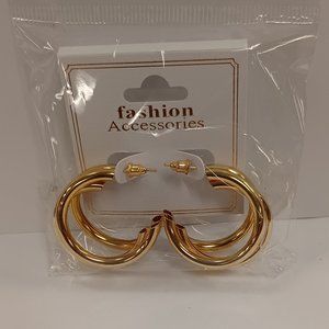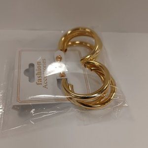 Tri-Hoop Design Earrings - Gold