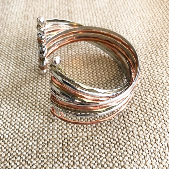 Gold, silver and rose gold tone cuff One size and adjustable Great condition!