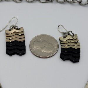 Tri-Tone Metal Waterfall Statement Bib Necklace & Earrings Set 17"/1" Cleopatra