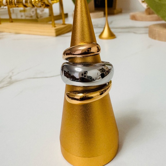 Tri-Tone Stackable Statement Rings - Gold & Silver