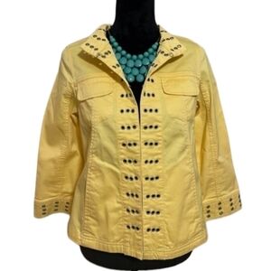Tria | Yellow jacket with grommet detail, 3/4 sleeve,pockets