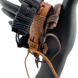 Strap in with this hand-woven leather trio—black, brown, tan—raw armor for rebels who refuse to pick a lane. Adjustable to strangle conformity or slip into anarchic ease, each cuff bends to your chaos: black for goth-punk grit, brown for bohemian-surfer ease, tan for rock & roll recklessness. Layer them, clash them, let their braids snarl like a manifesto. One size shackles all wrists. Scuffed, supple, and shamelessly battle-worn. Three shades. Zero apologies. Your arm’s not a canvas—it’s a warzone.