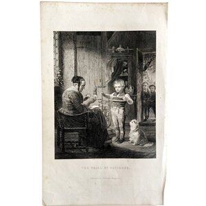 Trial Of Patience Loom Sewing Steel Engraving 1859 Victorian Craft Art DWY5C