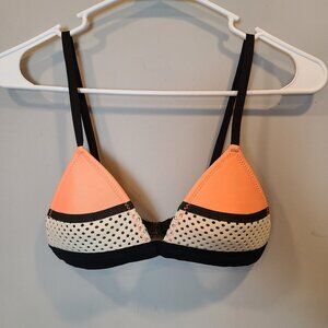 Triangl Bikini Top Womens Extra Small Orange White Mesh Swimsuit