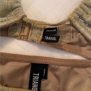 Elegant bikini with a glittering gold design. Ideal for sunny beach outings.