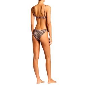 A scoop crop bikini top in a geometric print, Strappy crop top with adjustable shoulder straps and back clasp fastening.
